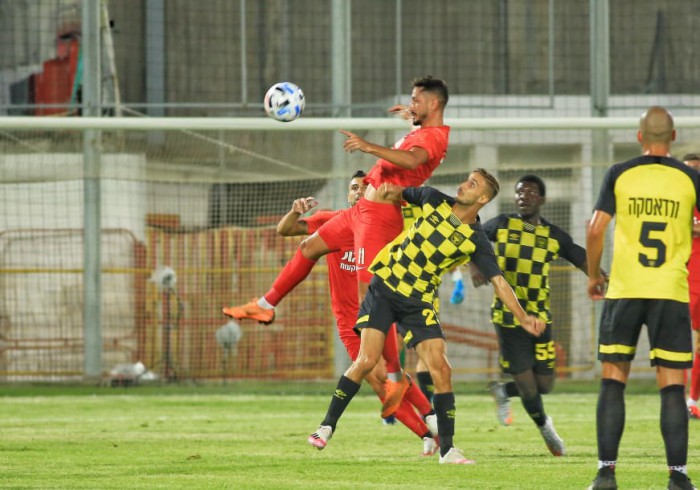 יחזקאל גבוה מעל ההגנה של בית"ר. (צילום: טל אקוקה).