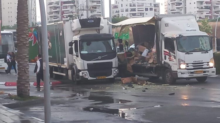תאונה בין 2 משאיות הבוקר בצמוד למתחם גן העיר, ללא נפגעים